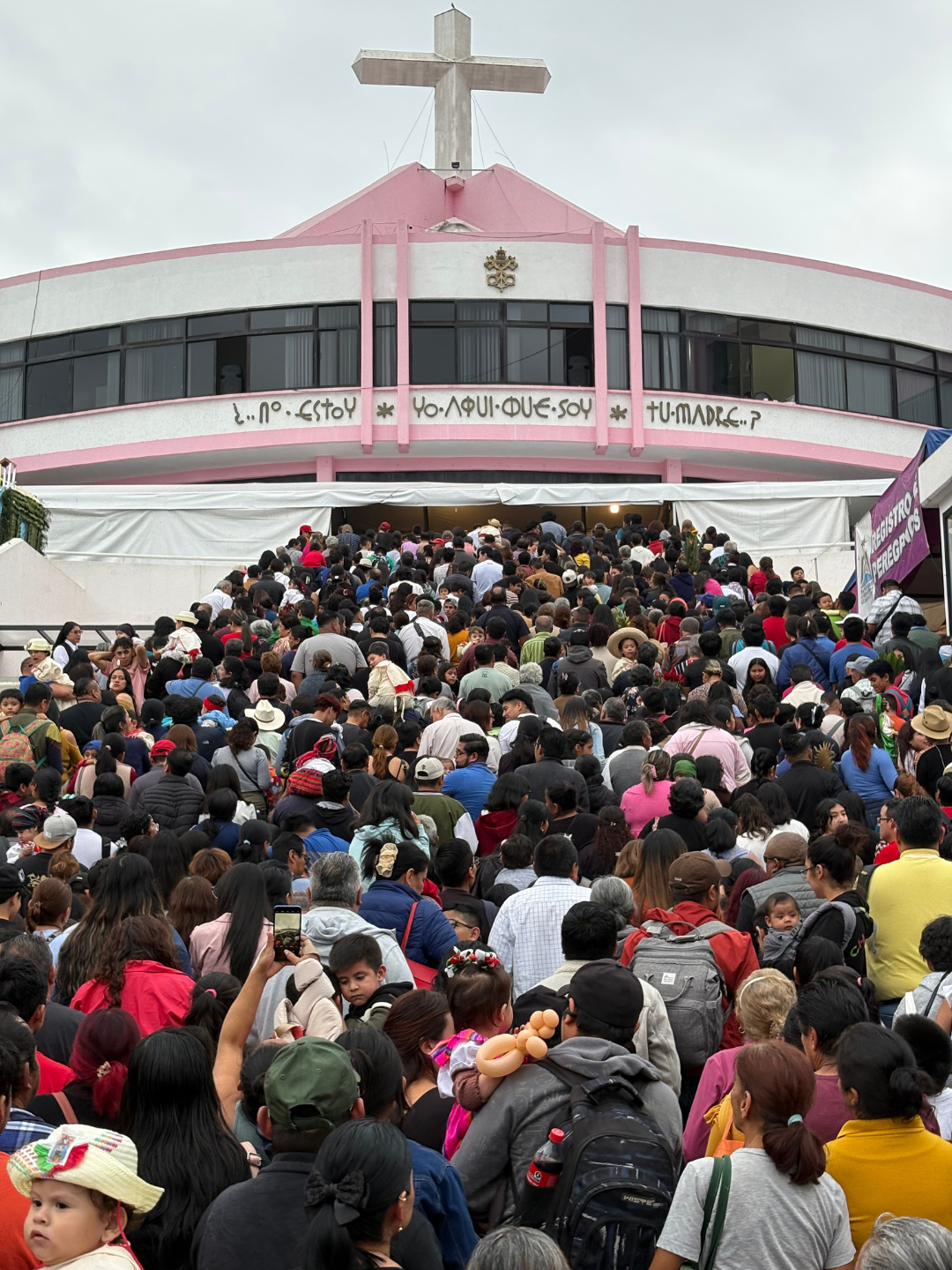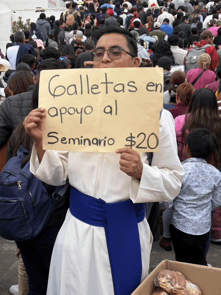 En las escalinatas y alrededores del recinto religioso, cientos de peregrinos aguardaban su turno para ingresar y acercarse a la imagen de la Virgen. Entre los asistentes se encontraban estudiantes del Seminario de Xalapa, quienes ofrecían a la venta galletas con el objetivo de recaudar fondos para cubrir gastos de la institución y apoyar la continuidad de sus estudios.