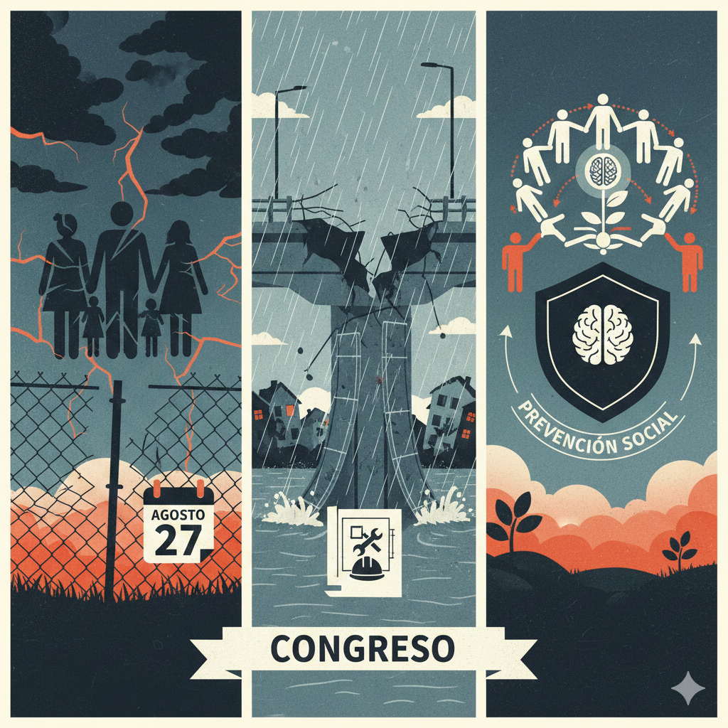 Hacia finales de agosto, el Congreso incorporó exhortos enfocados en la atención directa de problemáticas sociales persistentes. El 27 de agosto se exhortó a las 16 alcaldías a fortalecer el acompañamiento comunitario y la canalización oportuna de casos de violencia familiar, anticipando una agenda que en los meses siguientes profundizaría en prevención, salud mental y cohesión social. Estos llamados se enlazaron con preocupaciones sobre infraestructura urbana y drenaje, particularmente en zonas afectadas por lluvias intensas.