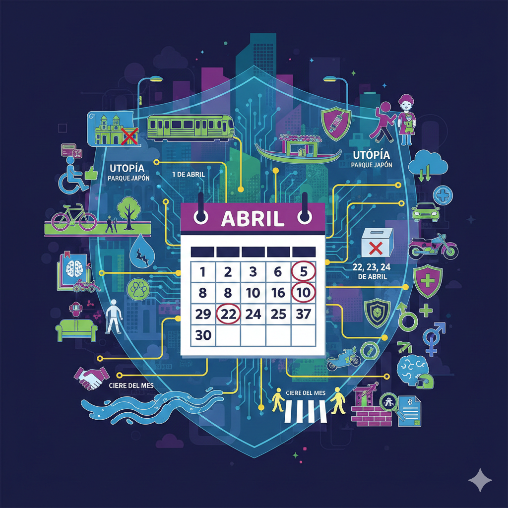 Abril inició con una agenda enfocada en servicios urbanos y control institucional. El 1 de abril se discutieron exhortos para investigar obras irregulares en inmuebles catalogados, implementar módulos itinerantes de la Tarjeta Incluyente, transparentar la construcción de la Utopía Parque Japón, retirar tanques de gas en mal estado, liberar calles ocupadas por vehículos asegurados, garantizar intérpretes de Lengua de Señas Mexicana, apoyar a mujeres cuidadoras y asegurar condiciones seguras tras la reapertura de la Línea 1 del Metro.