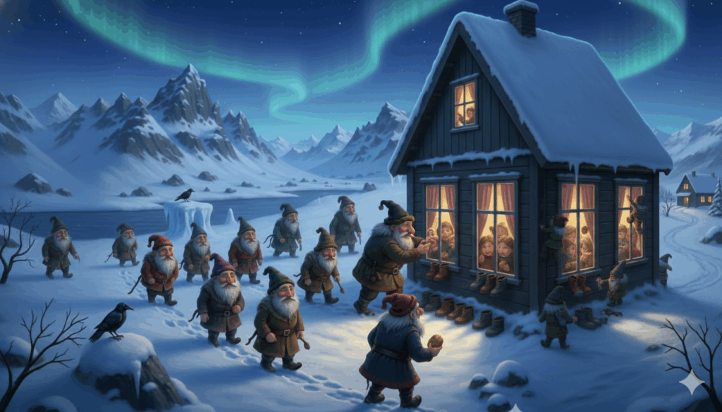 Islandia sobresale por tener una mitología navideña excepcionalmente singular y rica. En ese lugar, la cuenta regresiva hacia Navidad no está a cargo de un solo Papá Noel, sino de los Jólasveinar o Yule Lads, que son trece personajes pícaros que van a ver a los niños durante los trece días anteriores a la Navidad y dejan dulces o castigos dependiendo de cómo se hayan comportado. Los niños ponen un zapato en la ventana todas las noches, con la esperanza de obtener dulces si han sido buenos o, de lo contrario, una patata para indicar desaprobación.