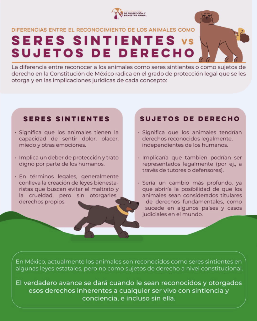 Esta arquitectura legal obliga a autoridades estatales y municipales a formular, ejecutar y supervisar acciones que garanticen el respeto y la protección de todos los animales dentro de la entidad, dejando en claro que no serán tratados como simples bienes sin sensibilidad.