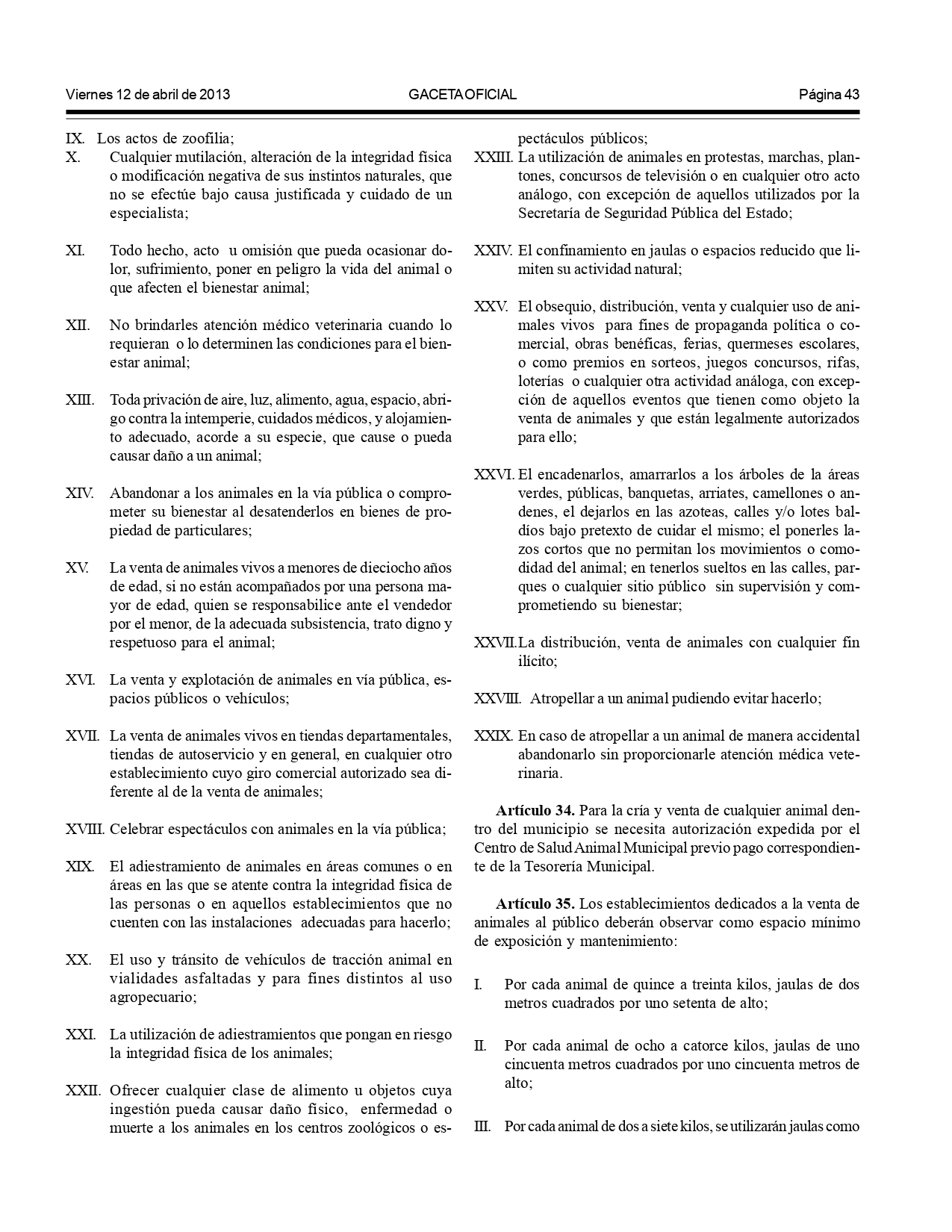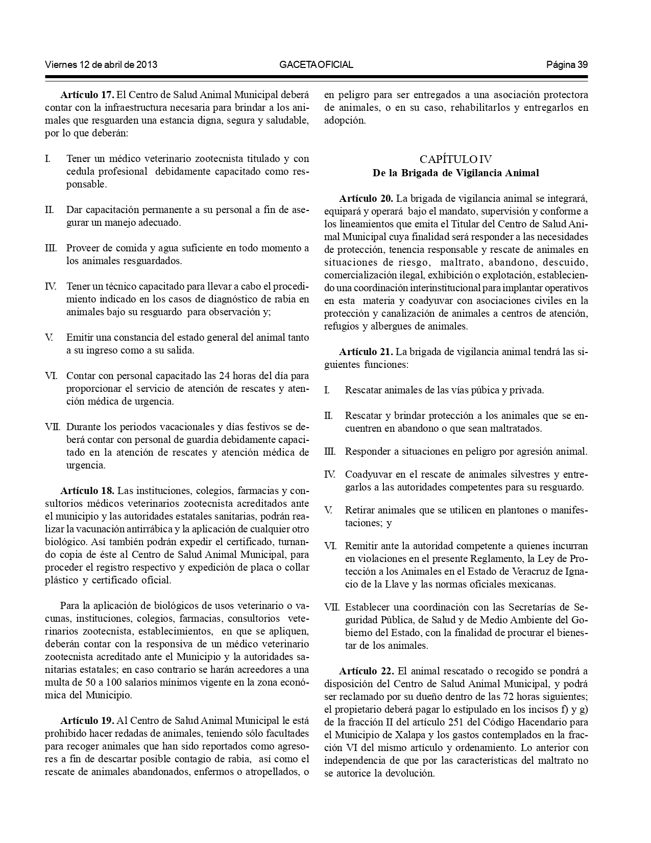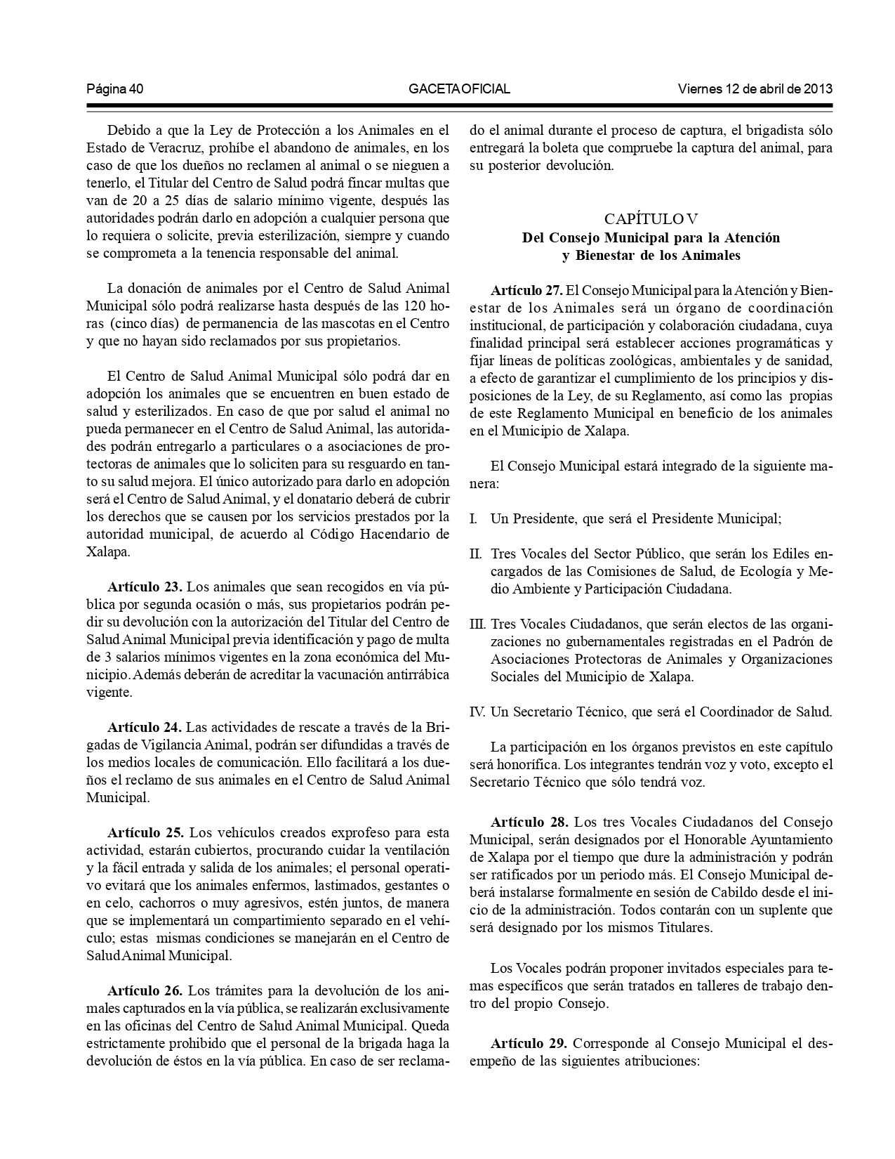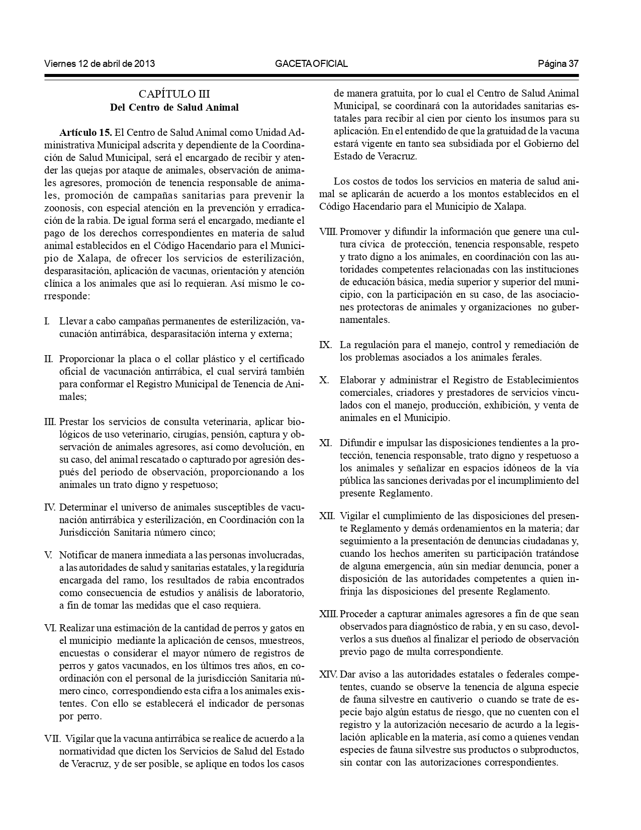 Según el Reglamento de Bienestar y Protección Animal para el municipio de Xalapa: