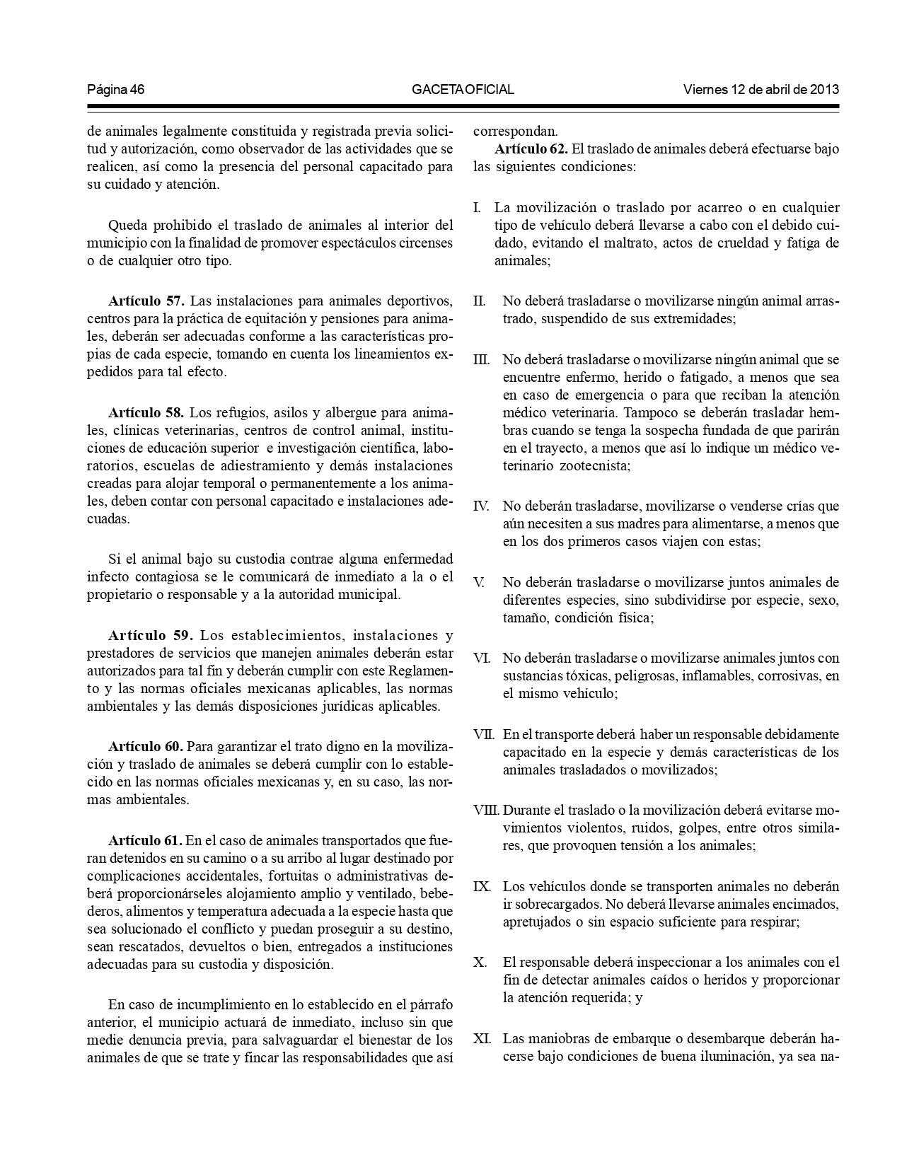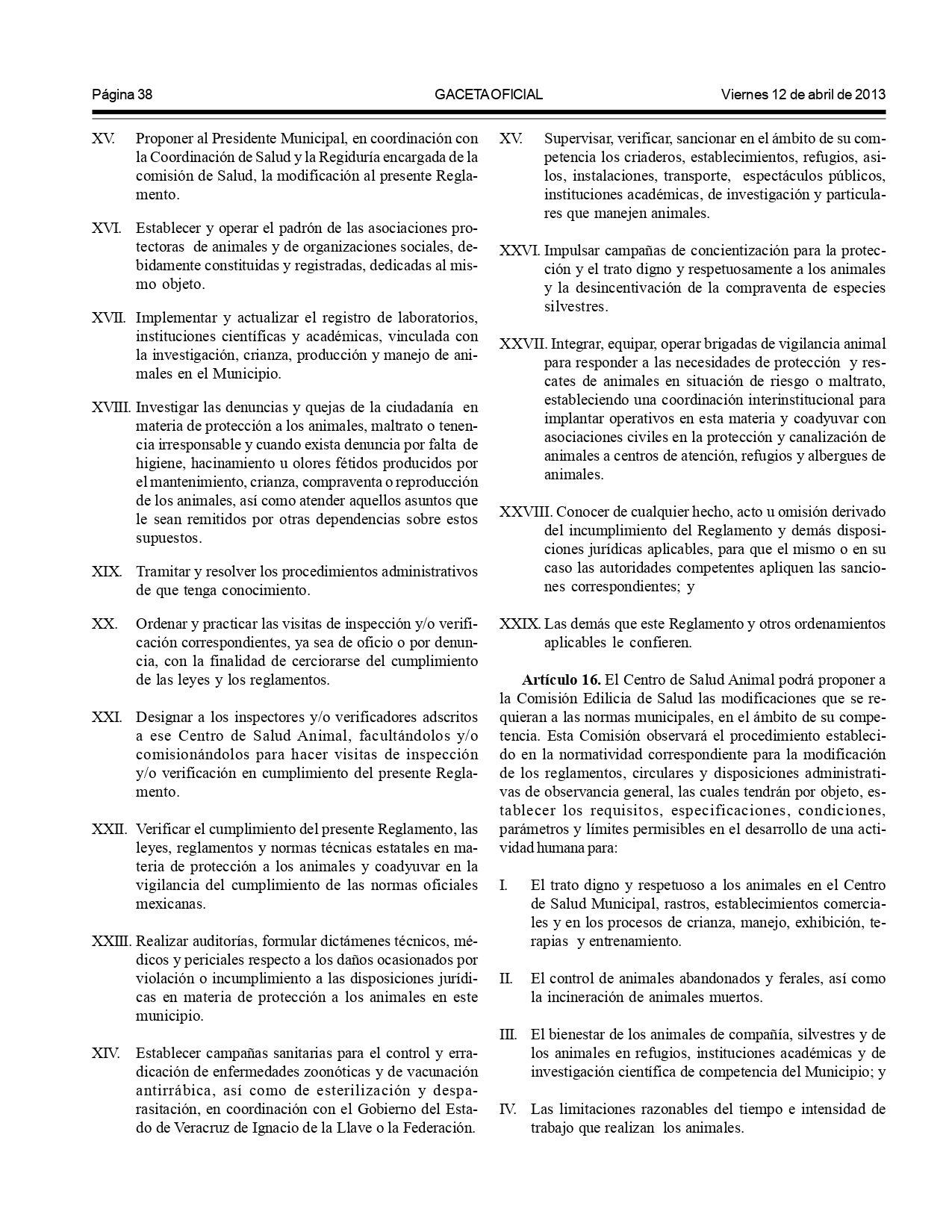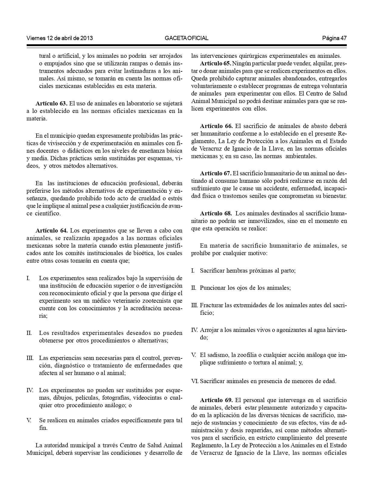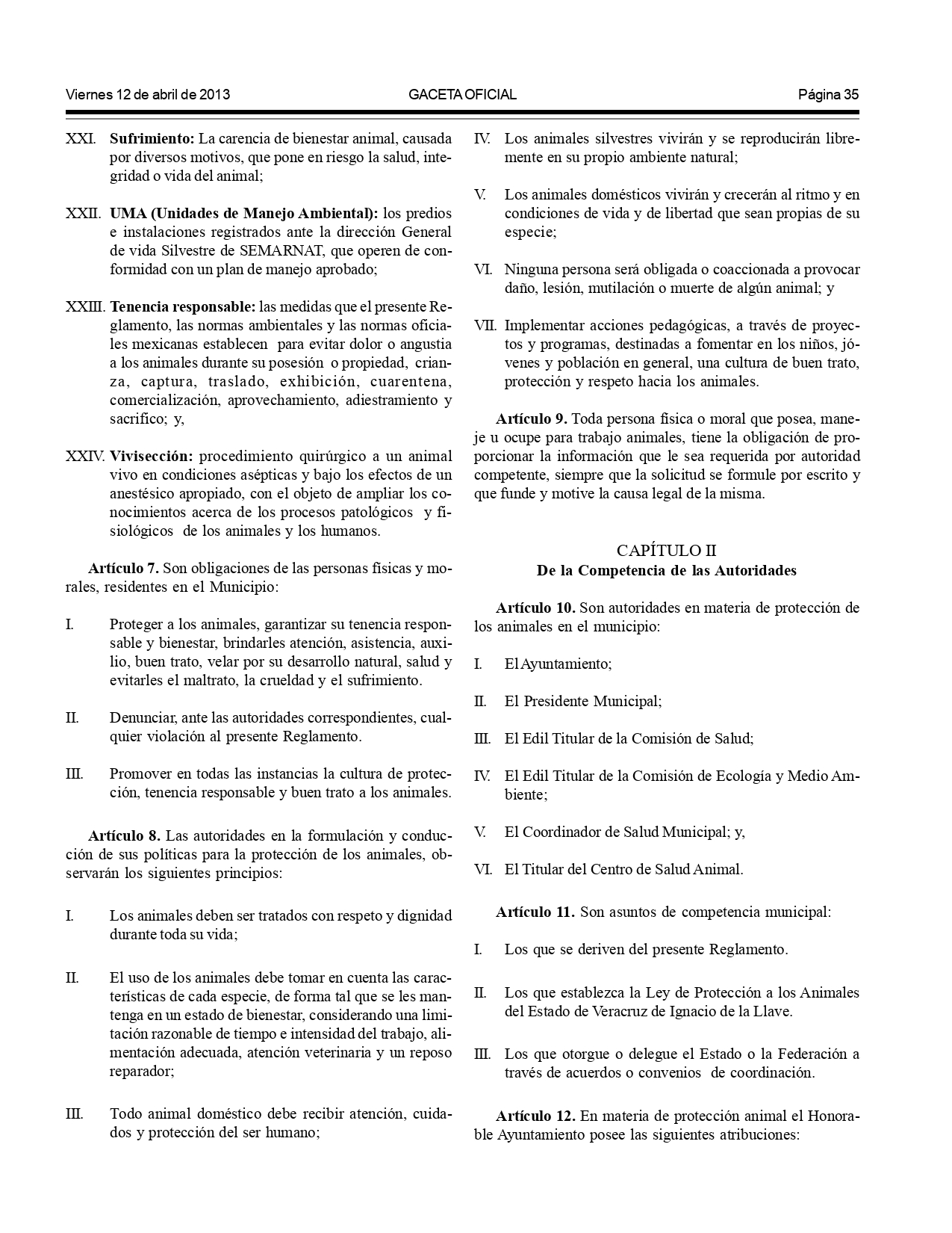 Según el Reglamento de Bienestar y Protección Animal para el municipio de Xalapa: